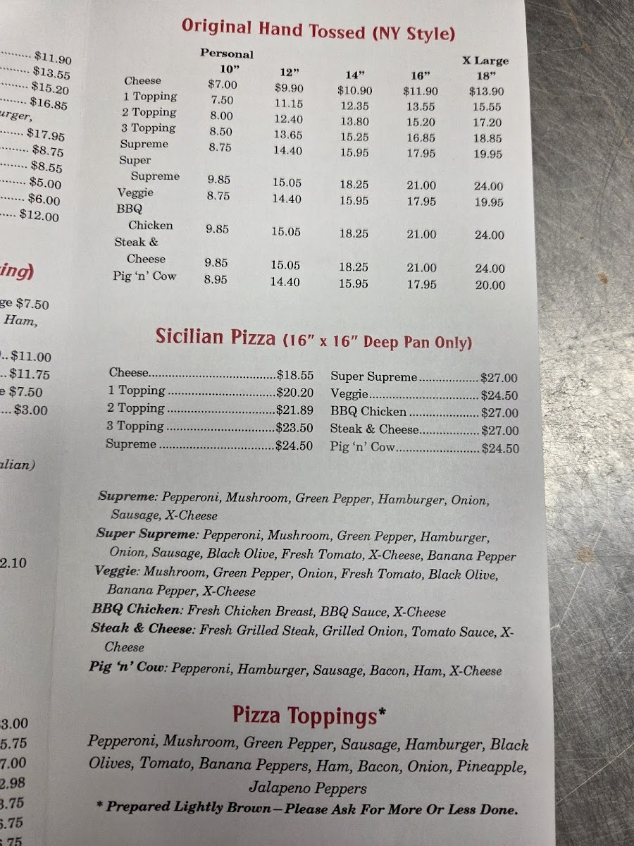 Pizza Town Menu